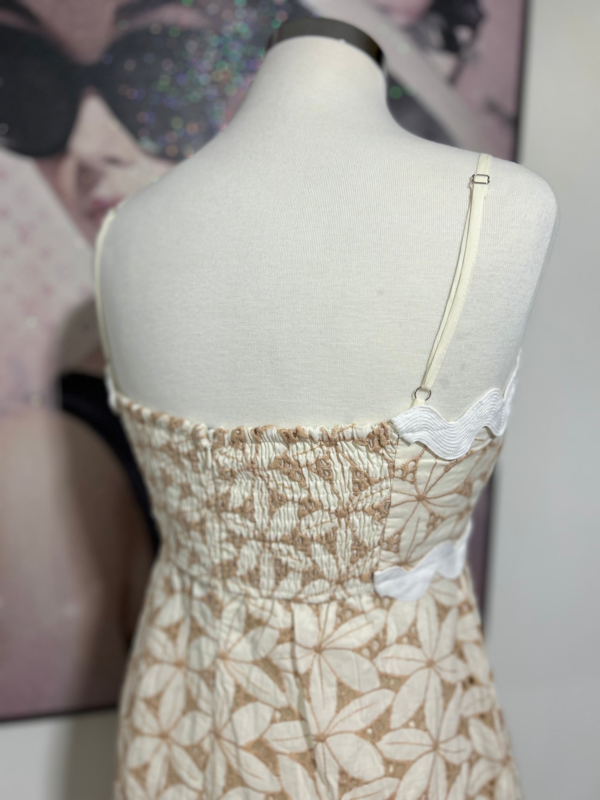 Confeccionado en una tela ligera y suave al tacto, tiene un fit relajado que se adapta al cuerpo con gracia. Incluye elástico en la parte posterior para mejor ajuste, tirantes ajustables para mayor comodidad y un zipper invisible en la espalda que lo hace fácil de poner sin sacrificar estilo.